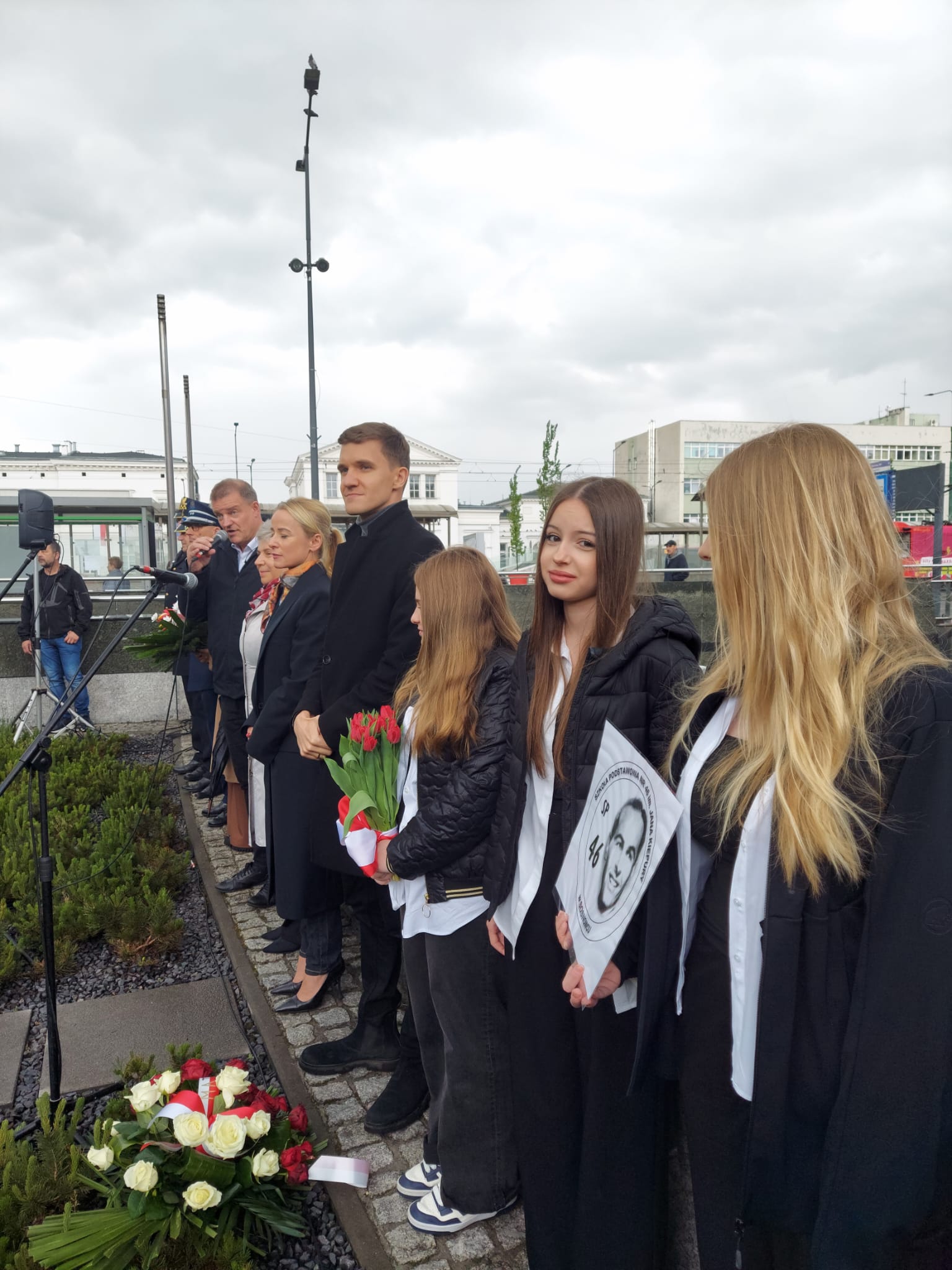 W uroczystości wzięli udział między innymi: przedstawiciele Sejmu Rzeczypospolitej Polskiej pani Joanna Sekuła, pan Mateusz Bochenek, przewodnicząca Rady Miasta Sosnowca pani Anna Rykała- Jedynak. Naszą szkołę reprezentowały uczennice klasy 8a Ola Karp, Ada Kiwer i Pola Wawrzak pod opieką pani dyrektor Beaty Krzymińskiej i nauczycielki historii Elżbiety Skwarczyńskiej Cieślar.
