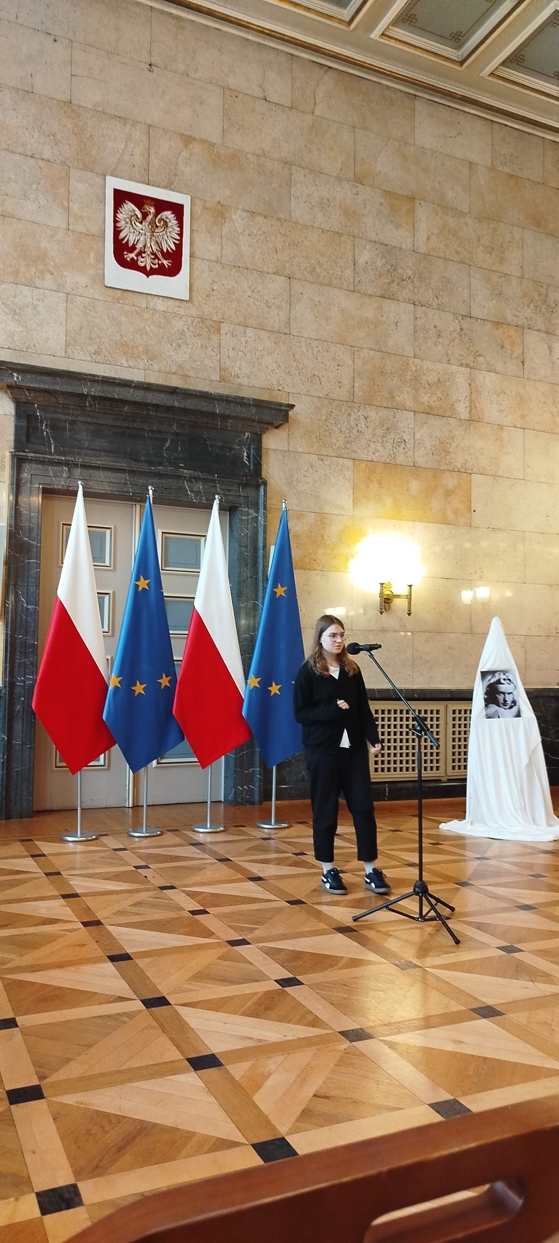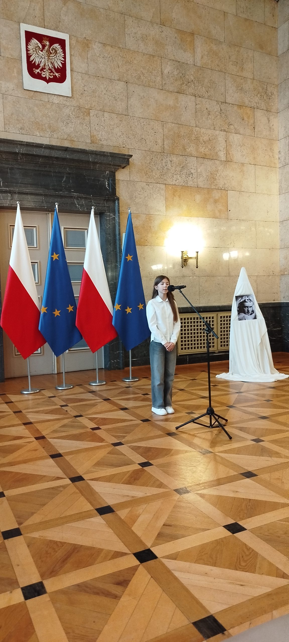 Blanka Brzozowska (kl.7b) oraz Weronika Korzeń (7a) wspaniale i przejmująco wygłosiły swoje teksty opisujące tragiczne losy pokolenia Kolumbów. Dziewczynom należą się ogromne gratulacje i podziw za udział w tak ważnym konkursie.