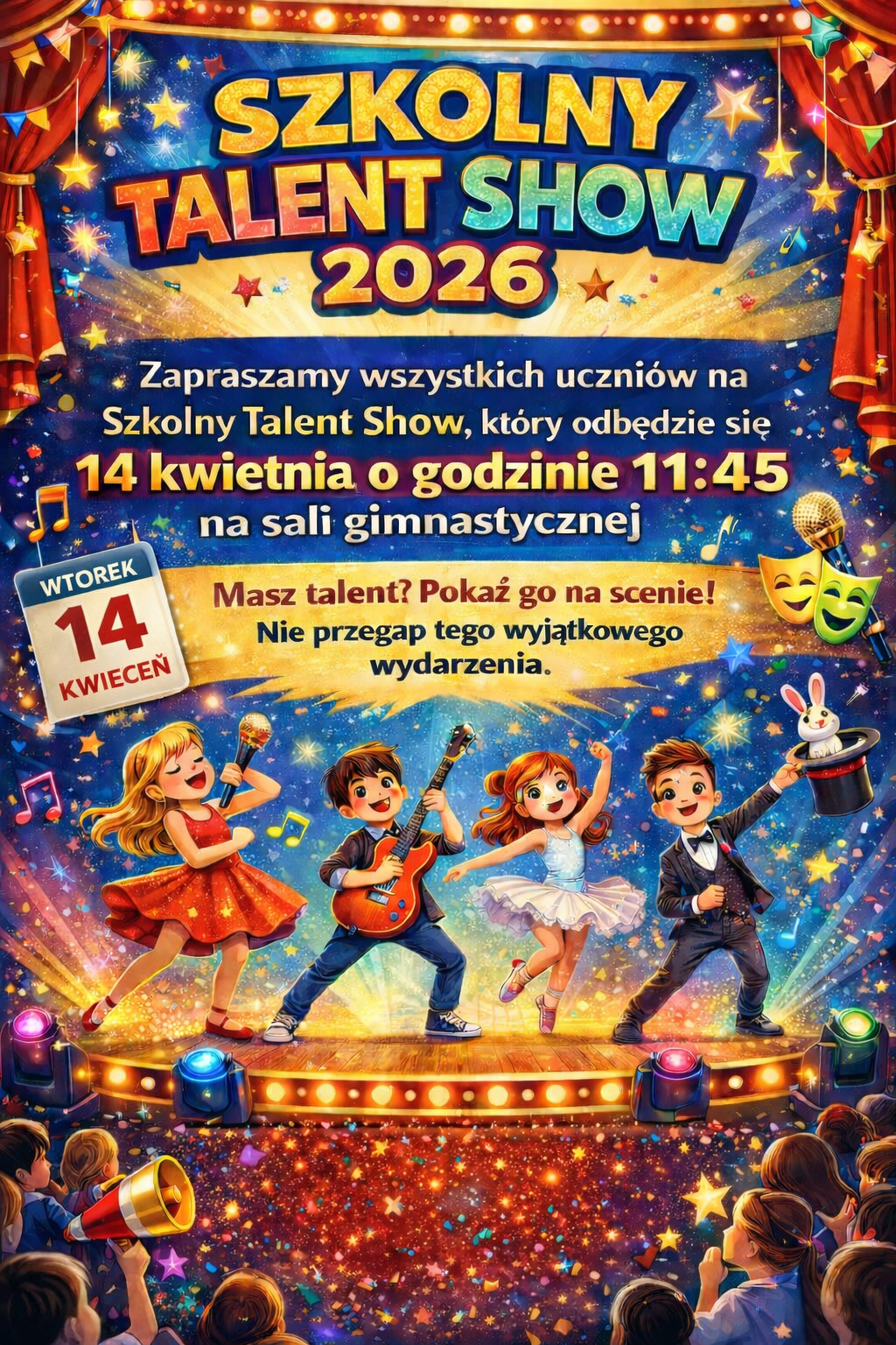 Zapraszamy wszystkich uczniów na Szkolny Talent Show, który odbędzie się: