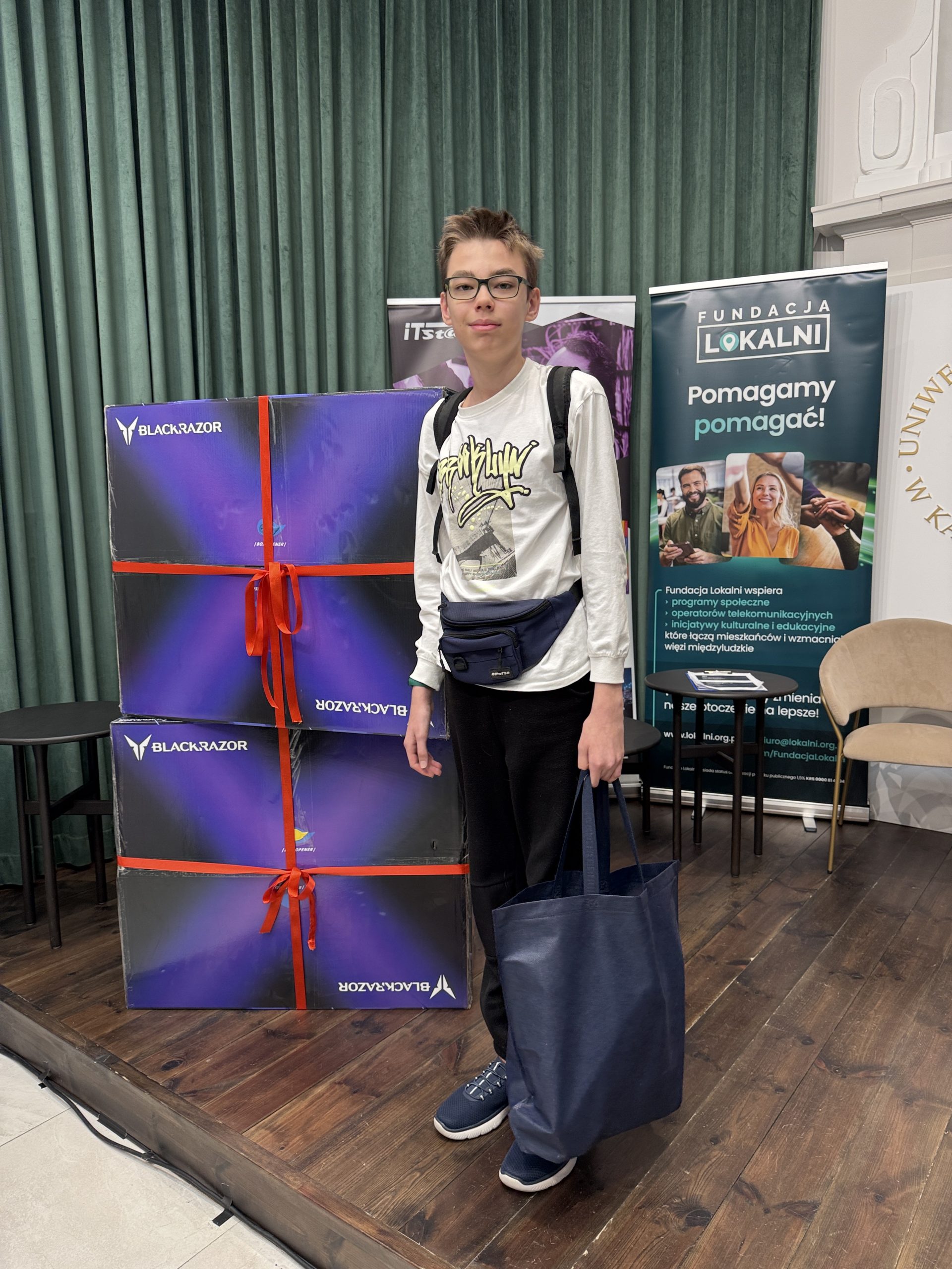 Ich sukces jest dowodem na wyjątkowy talent, ogromne zaangażowanie oraz imponującą wiedzę z zakresu cyberbezpieczeństwa, którą potrafili wykorzystać w praktyce na najwyższym poziomie. Główną nagrodą, którą otrzymał Bartek, był wysokiej klasy fotel gamingowy o dużej wartości.