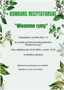 Dnia 27 marca w MBP filia nr 15 w Sosnowcu odbył się Międzyszkolny Konkurs Recytatorski „Wieszająki z Szafonii” zorganizowanego z okazji rocznicy urodzin Joanny Kulmowej.