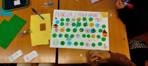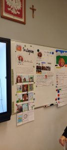 Dziecięca marzenia o zimie – to wystawa na korytarzu szkoły przygotowana przez uczniów klasy 1C